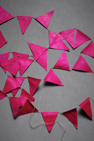 Podríamos no parar de mostrar imágenes con las ideas más variadas, pero en este caso os queremos mostrar estas maravillosas guirnaldas de papel que hemos traído para vosotras. Están hechas con un papel tradicional del Himalaya realizado a mano en Nepal y teñido a mano. Este papel las hace muy especiales y diferentes por eso son ideales para celebraciones tipo Bodas o Comuniones. Al estar teñidas a mano, ningún banderín es igual al otro y la verdad es que sus colores están muy logrados.