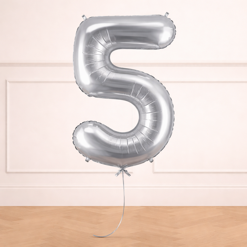Globo de número Foil plata acabado brillo.