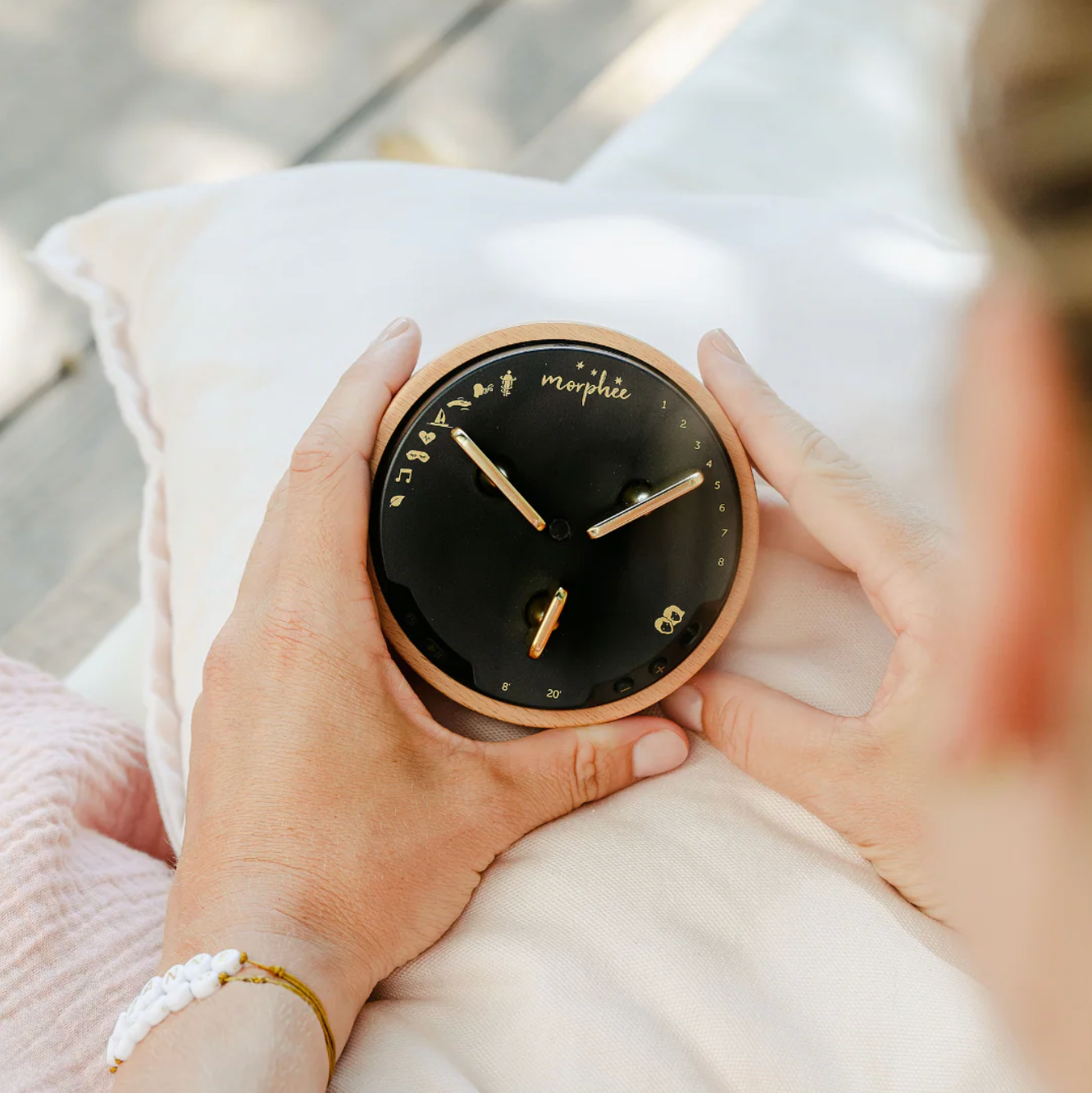 Morphée se trata de un aparato tanto para quienes no concilian el sueño con facilidad, como para los que simplemente buscan relajarse después de un día estresante. Sin conexión, sin ondas y sin pantallas ayuda a dormirse rápidamente y a disfrutar de un sueño profundo. Este dispositivo doméstico de bienestar ofrece una solución fácil, rápida y saludable a la «pesadilla» que supone la hora de dormir para aquellos que padecen insomnio o despertares nocturnos. Más de 210 sesiones de meditación y sofrología para dormirse fácilmente y generar un sueño profundo y reparador. Las sesiones están diseñadas por profesionales del sueño y pueden escucharse en la cama, a la hora de acostarse o durante los despertares nocturnos.