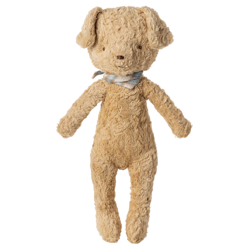Cumple tu sueño de tener un perro y adopta este dulce cachorro. Está fabricado con materiales exclusivos que le dan al perro un bonito aspecto vintage y un tacto suave. No te olvides de añadir los accesorios para tu nuevo mejor amigo.