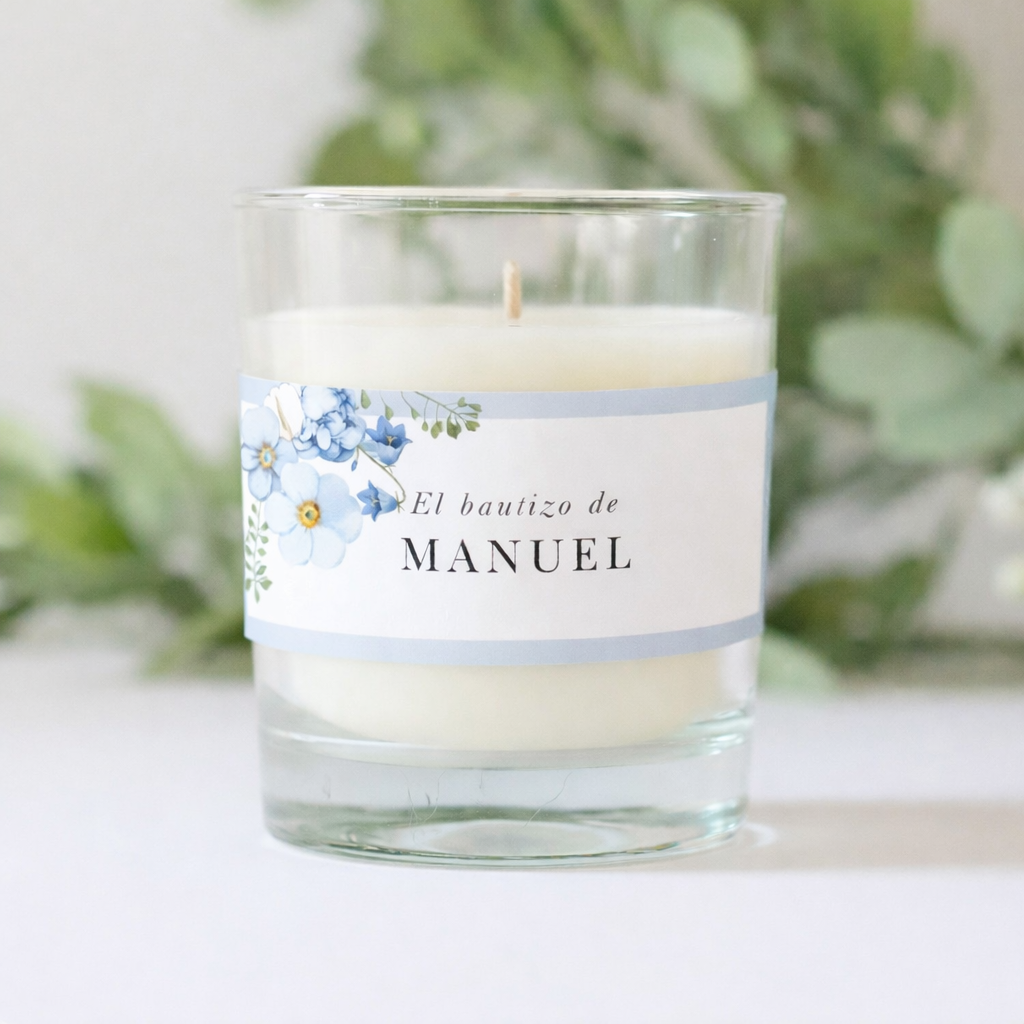 Este detalle es perfecto para regalar a los invitados como recuerdo de tu Primera Comunión, Bautizo o Cumpleaños. Velas en color marfil sin olor que vienen presentadas en un elegante vaso de cristal y que puedes personalizar con el nombre en una etiqueta adhesiva de alta calidad que le da el toque elegante final a este bonito detalle.