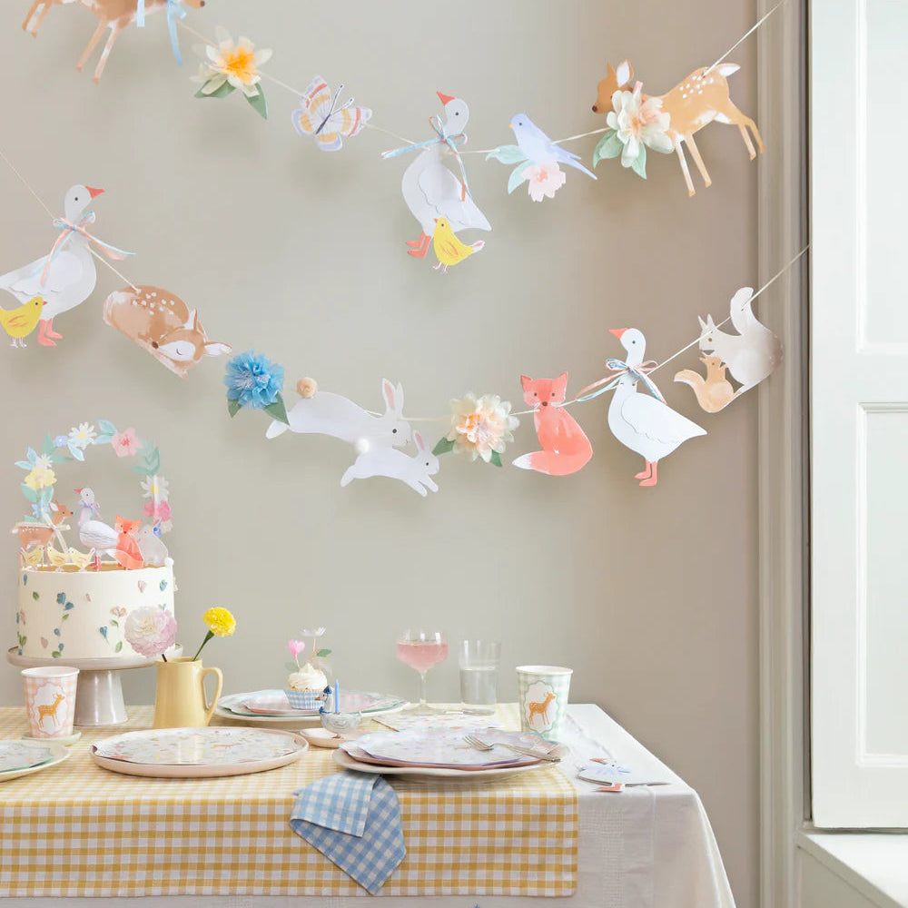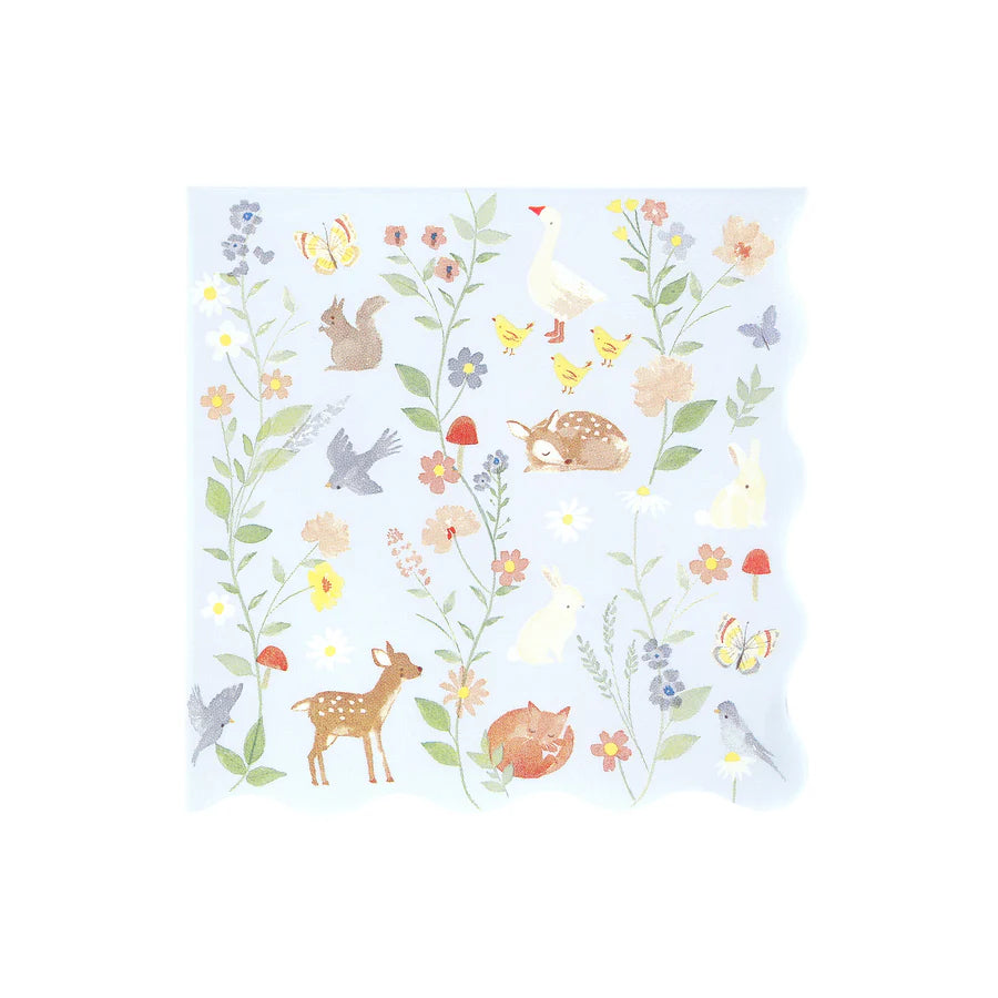 Nuestra colección Animalitos rebosa de encanto de cuento, inspirada en libros infantiles antiguos, animación de los años 40 y papel tapiz floral clásico. Estas servilletas de papel grandes con animales de acuarela, como gansos y cervatillos, entre delicadas flores, para aportar una delicada belleza a tu mesa de fiesta. Los bordes ondulados aportan un toque original. Perfectas para cumpleaños infantiles o baby showers.