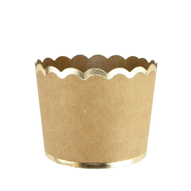 Bases de cartón en color kraft y un elegante borde dorado festonado. Perfecto para colocar cupcakes, golosinas o palomitas.