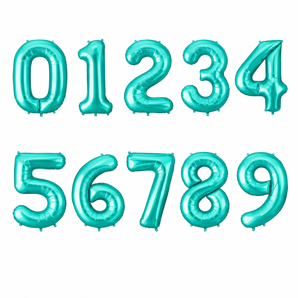 Emerald green foil balloon. Choose the number you need for your party. They are ideal stuck directly on a wall with double-sided tape. They will be the perfect back for the table of your next party.