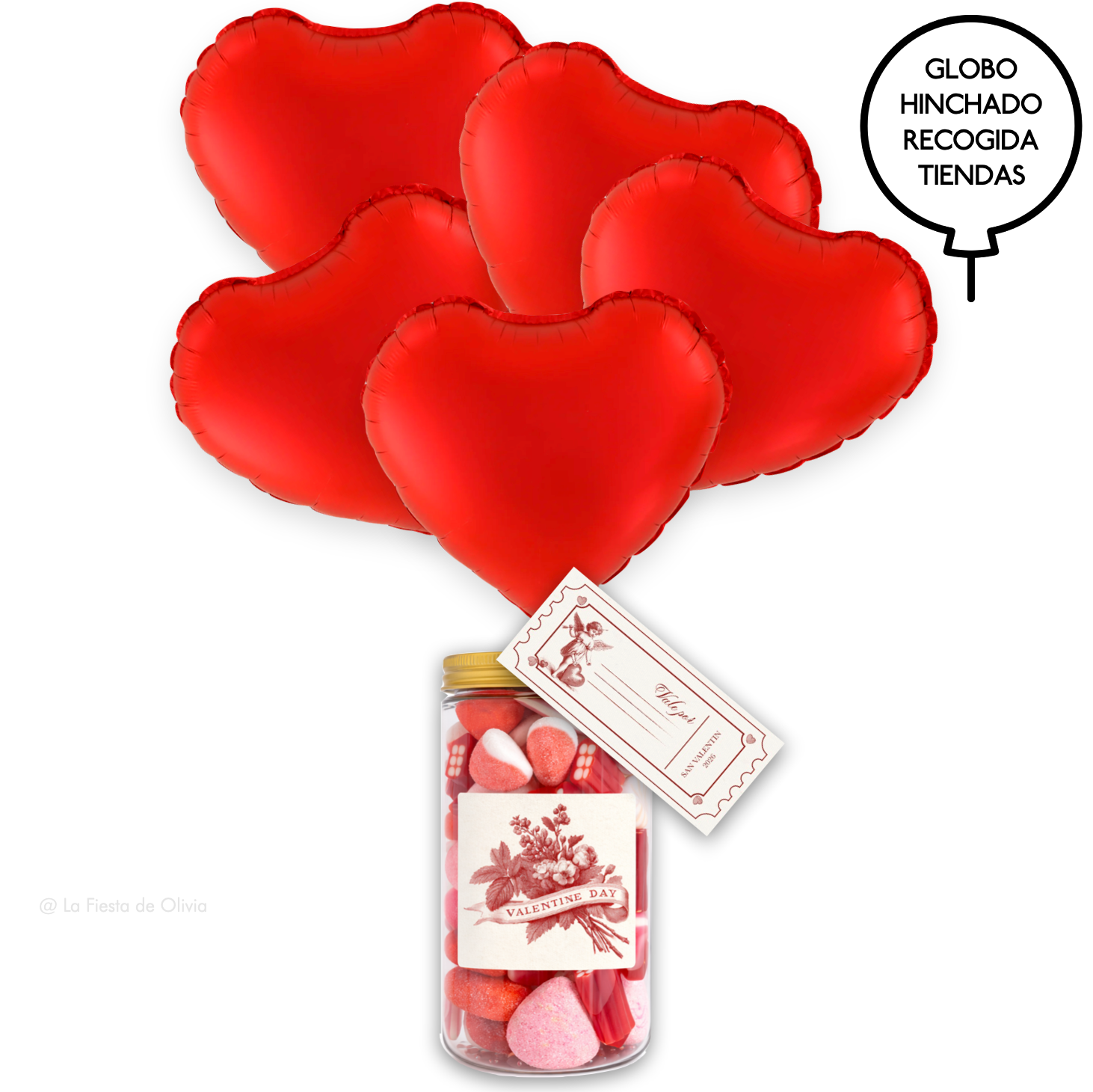 - 1 Heart-shaped foil balloon 40 cm. approx. inflated with professional helium, rope and a weight.