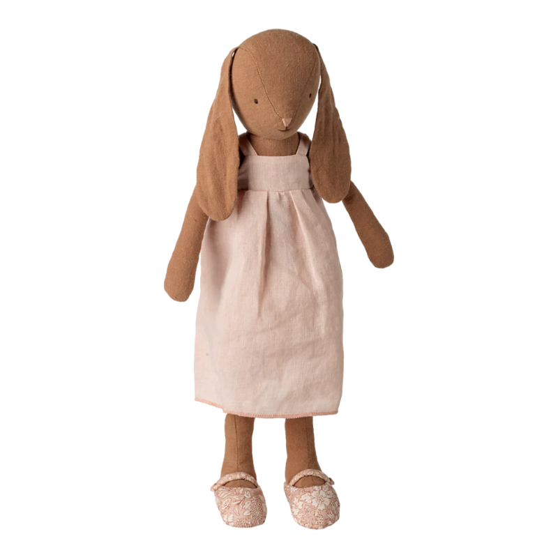 Una conejita clásica hecha con suaves tejidos naturales, de tacto y aspecto encantadores. Lleva un vestido precioso y zapatitos suaves. Explora nuestra colección de ropa y muebles para ampliar los accesorios de la conejita.