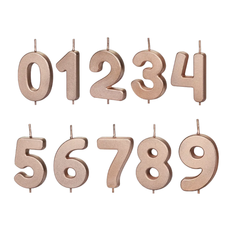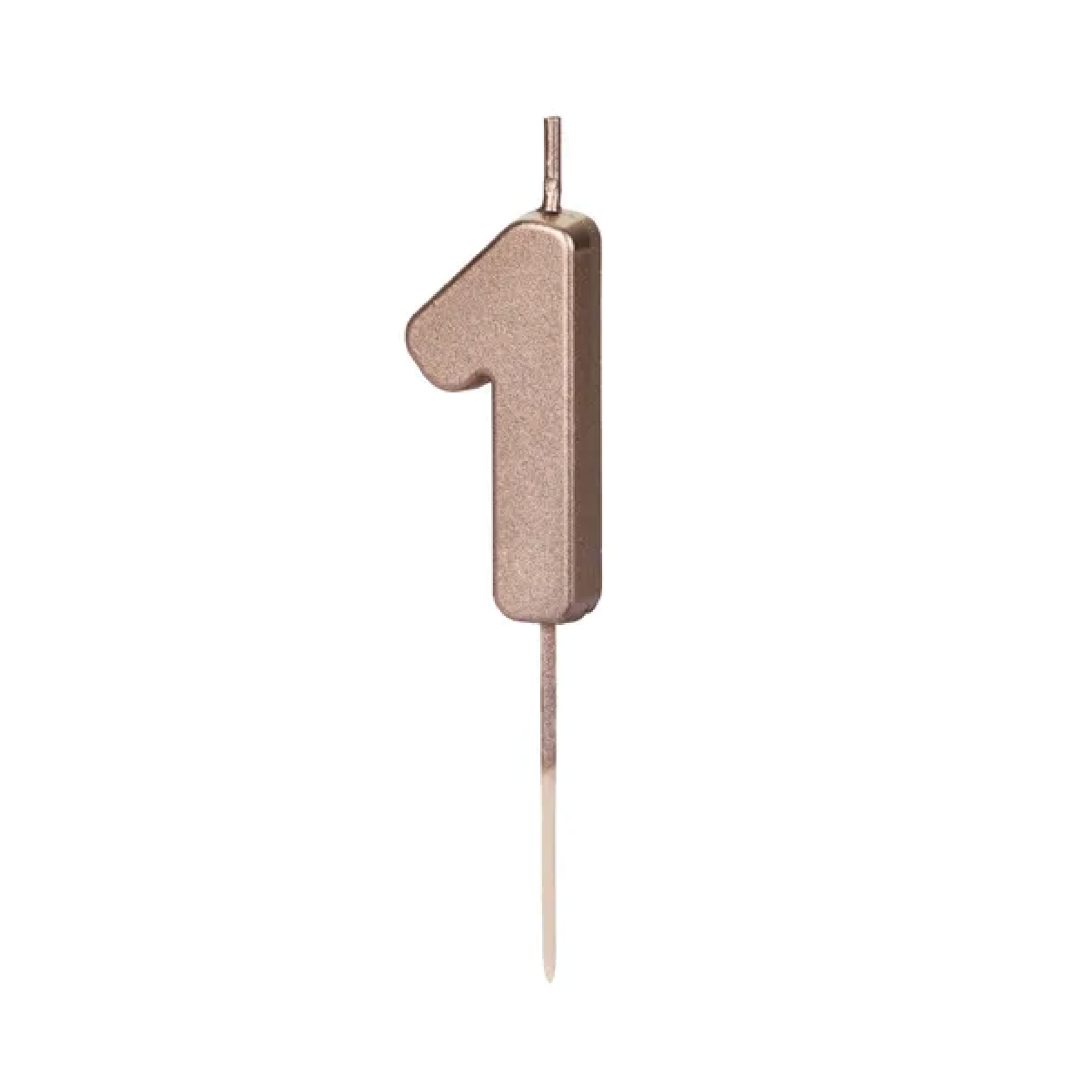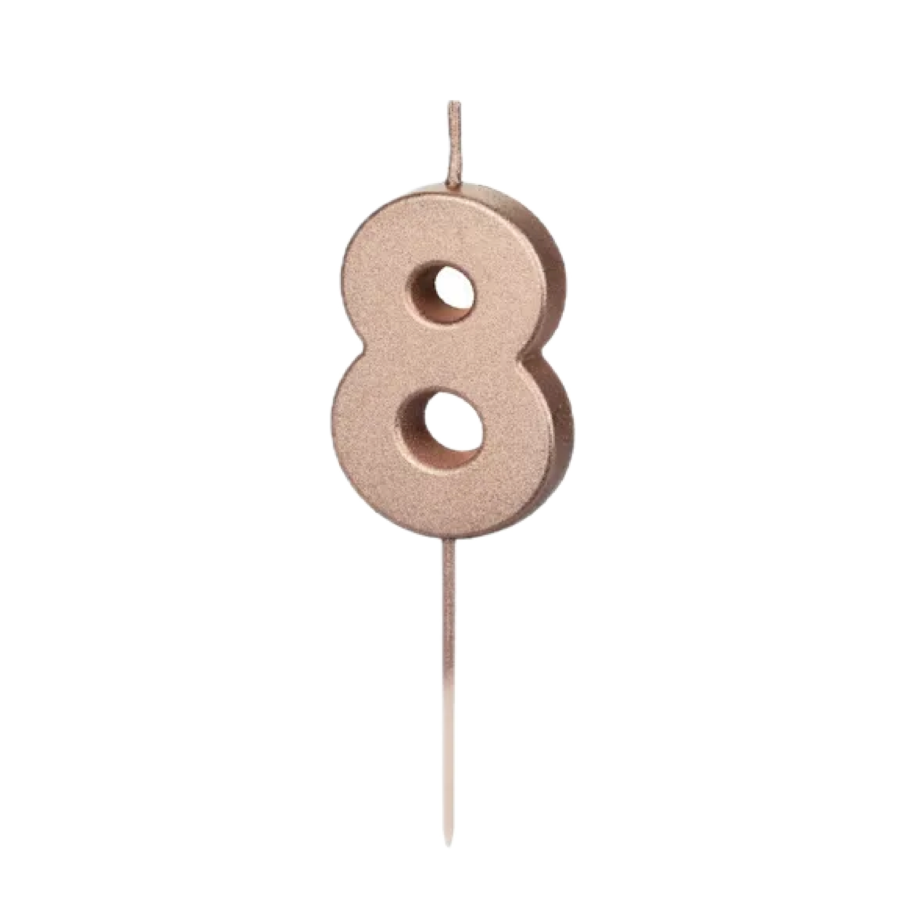 Vela de número en color rosegold, un básico para un bonito pastel de cumpleaños. Todas las velas tienen un palito para poder pincharlas sin problema en cualquier pastel.