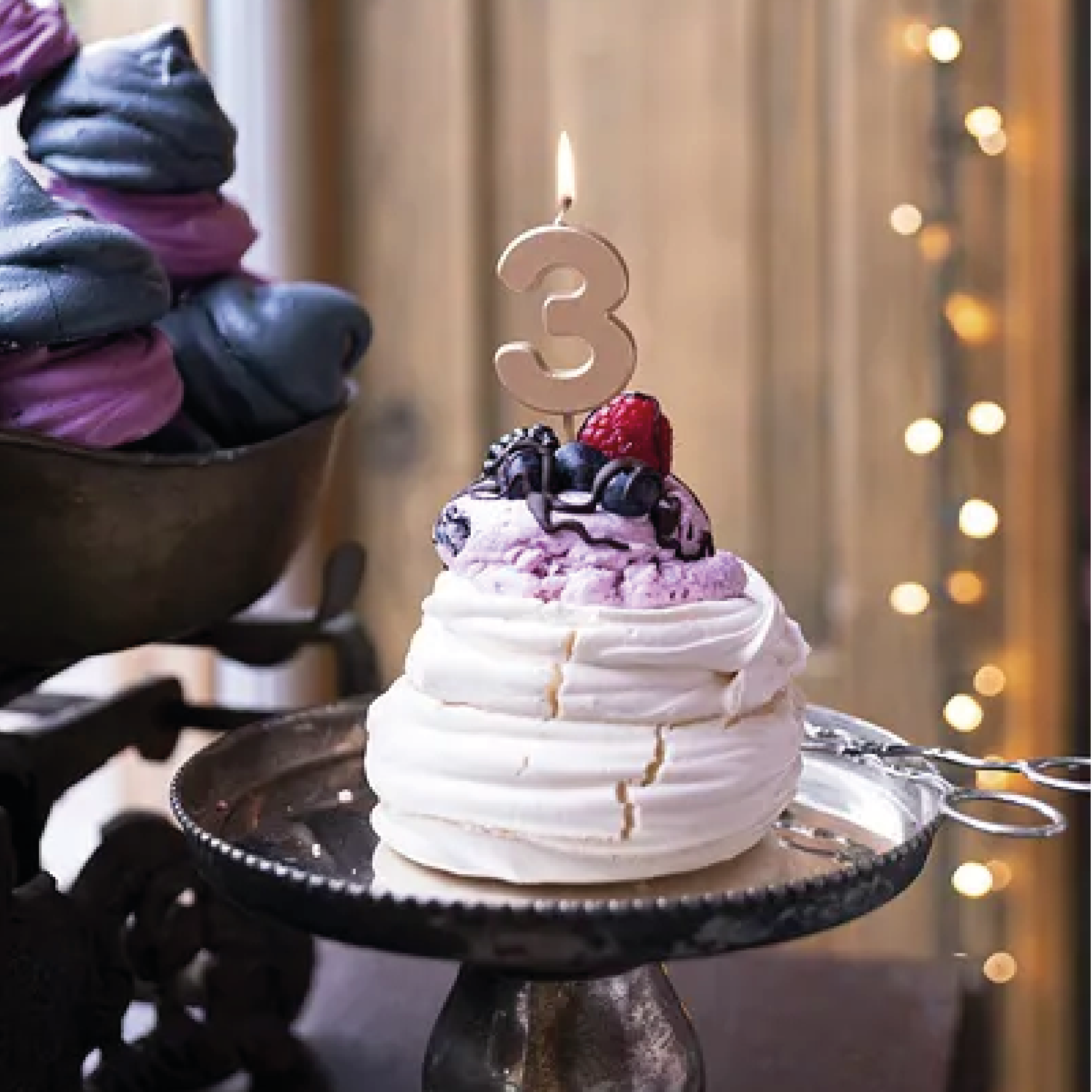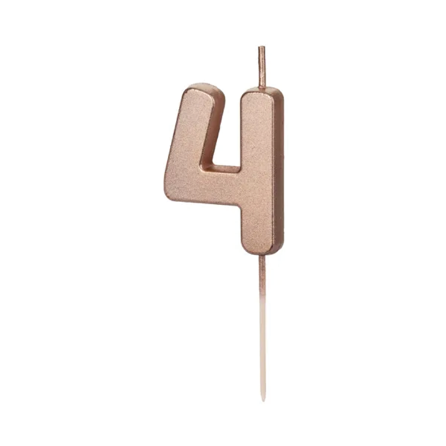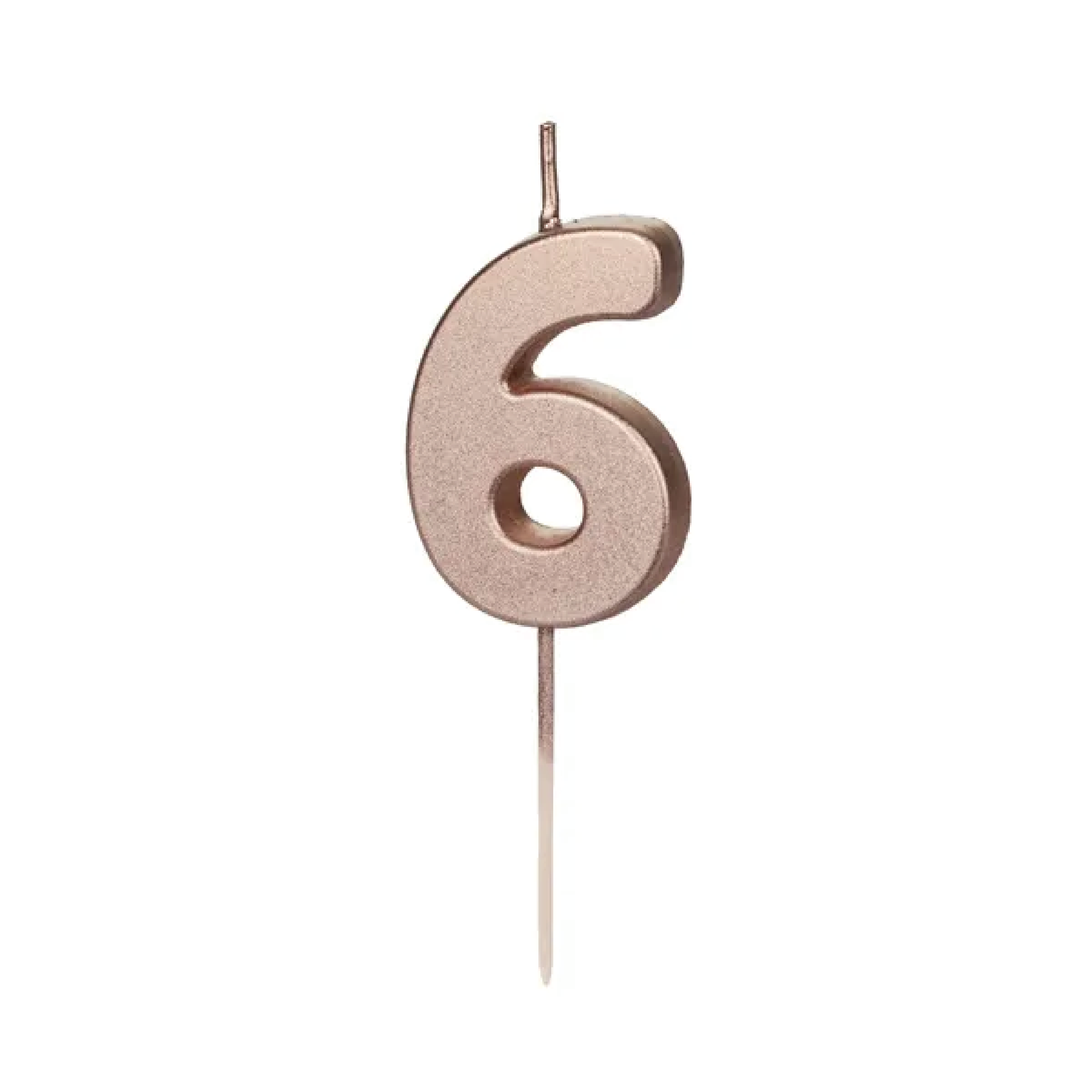 Vela de número en color rosegold, un básico para un bonito pastel de cumpleaños. Todas las velas tienen un palito para poder pincharlas sin problema en cualquier pastel.