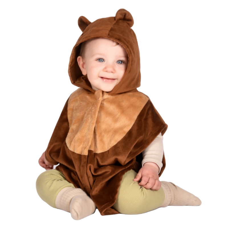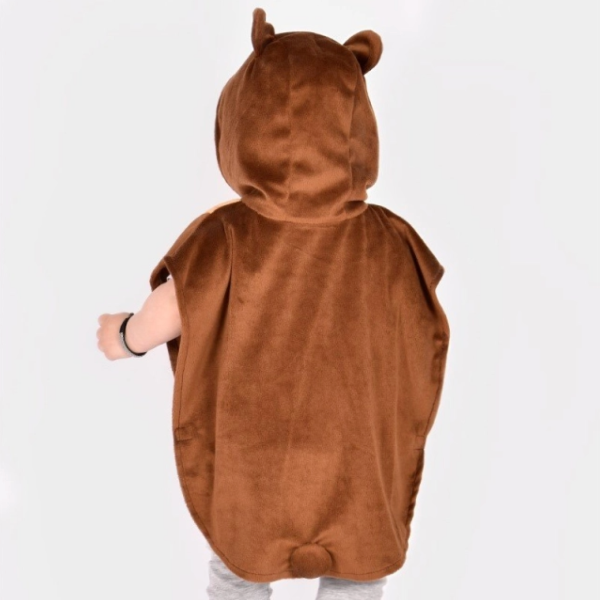 Este disfraz de oso marrón no puede ser más ideal. Se cierra con velcro por la parte delantera,  incluye cola redonda y orejas en la capucha. Incluye elásticos en los laterales.Apto para la lavadora en programa suave o a 40º. No apto para la secadora. No planchar.