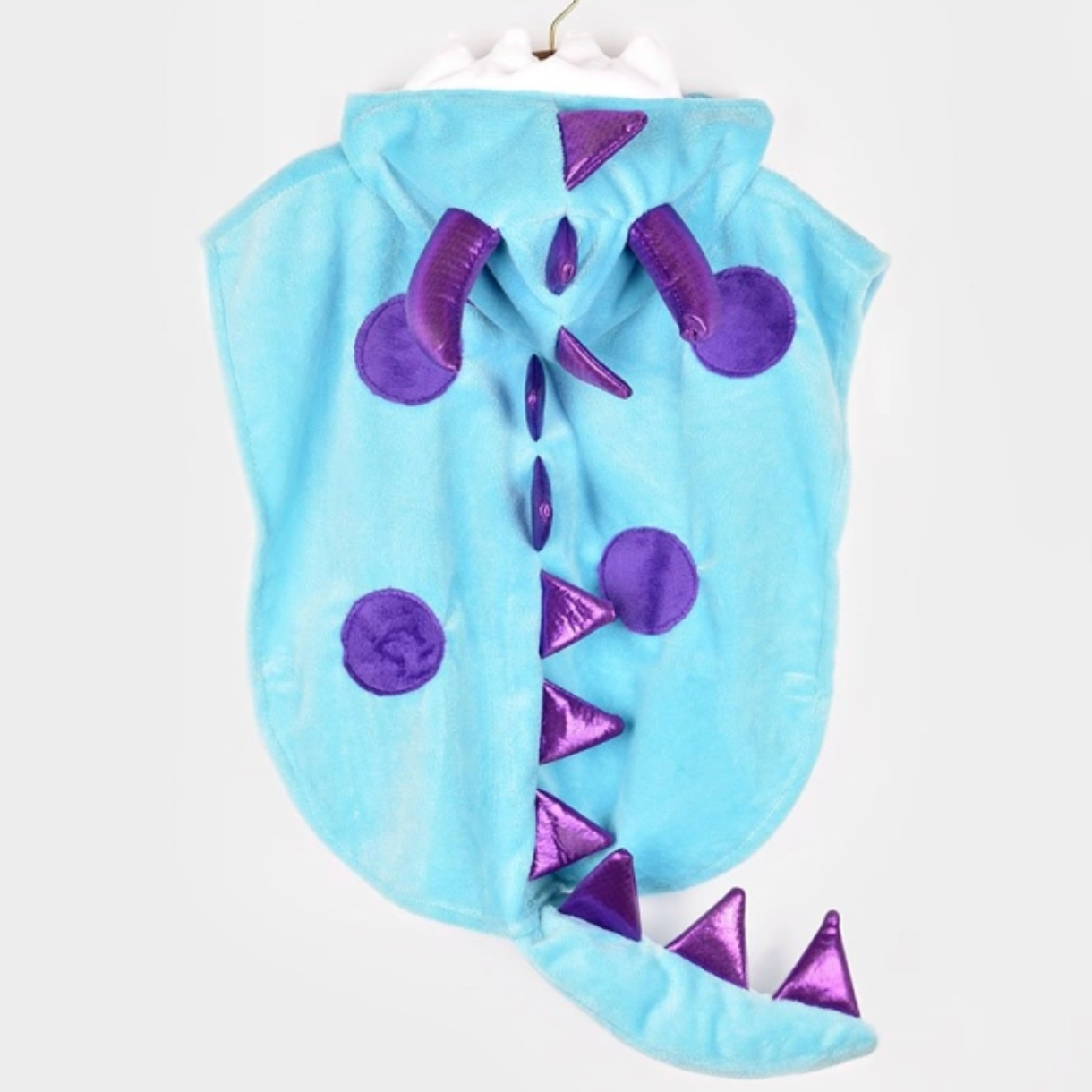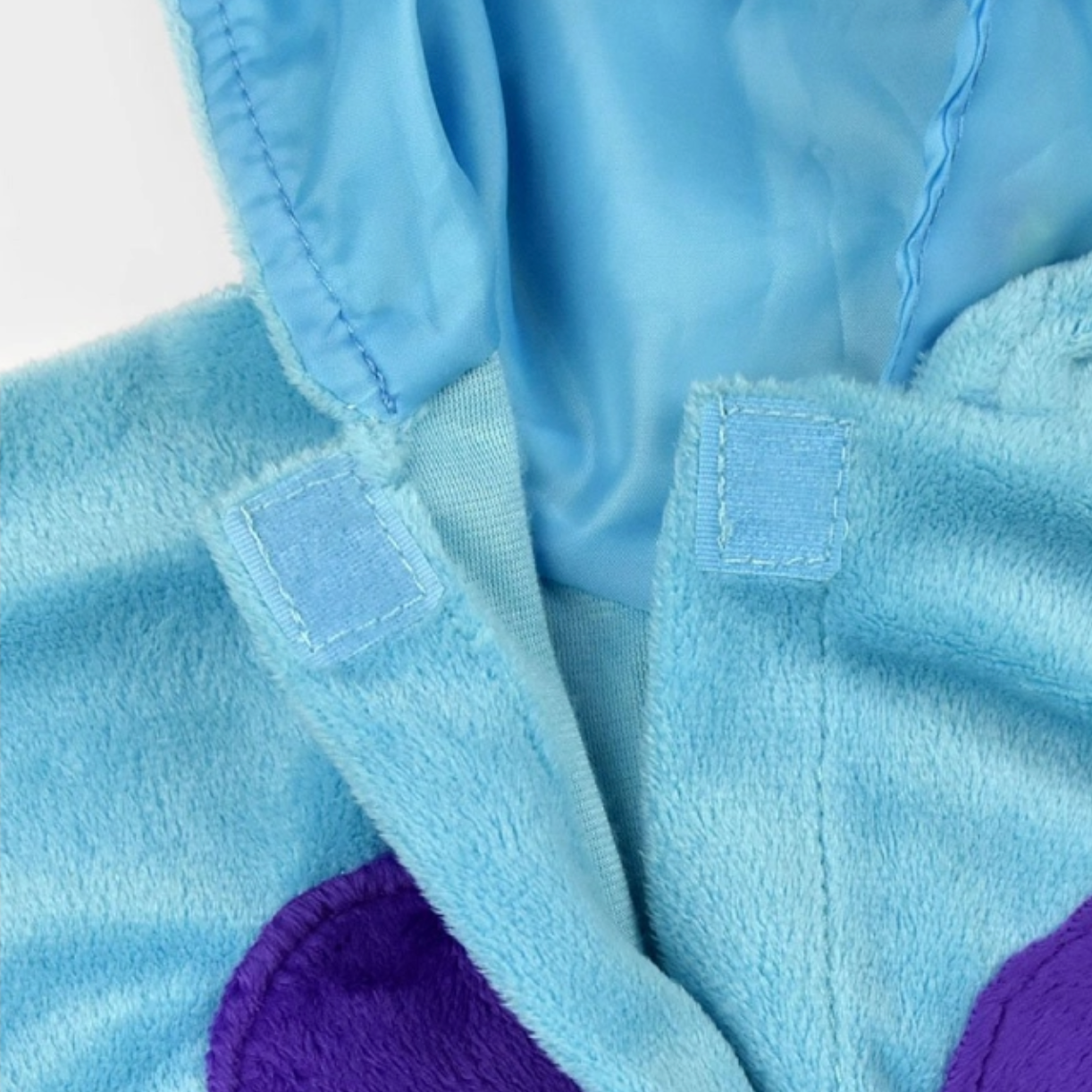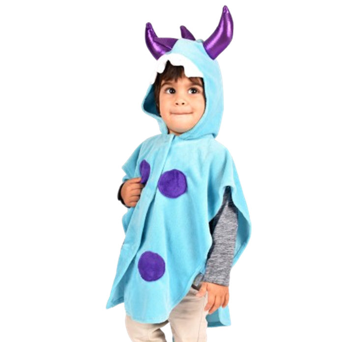 Este disfraz de mini monstruo azul no puede ser más ideal. Se cierra con velcro por la parte delantera, incluye capucha cosida con dientes en la parte baja y cuernos acolchados en color morado metalizado en la parte superior de la capucha. Con detalles morados sobre el disfraz. Con una larga cola con púas acolchadas en color morado metalizado que llega hasta el suelo. En ambos laterales tiene una banda elástica.