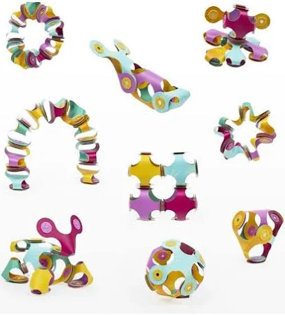 Clixo es un juego de construcción innovador y creativo para que los niños hagan clic y construyan creaciones en 3D con sus piezas flexibles imantadas. 9 piezas de la característica forma Quad de CLIXO para realizar más de 100 ocurrentes creaciones. Ya sea una serpiente, una corona, una bola o formas apilables. ¡Con este maravilloso kit de bolsillo encontrarás un mundo de formas y descubrimientos muy divertidos!