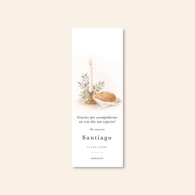 Marcador de livro personalizado com oliveira e pão.