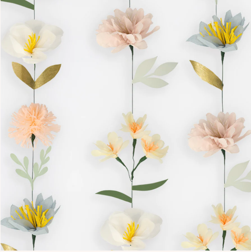 Com esta cortina de tiras com flores de papel de seda em tons pastéis e muito especiais. Foi pensado para que possa fazer uma parede com flores e assim dar um toque muito diferente à sua festa. Então, você pode usá-lo como decoração no quarto das crianças para dar um toque muito fresco.