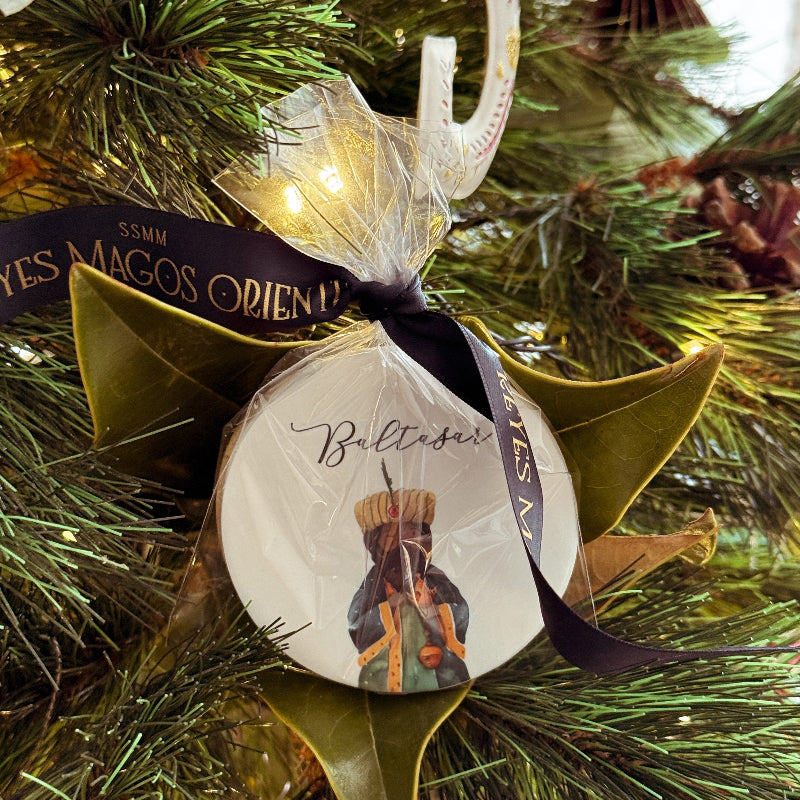 Esta galleta de Baltasar decorada con nuestra exclusiva cinta de raso es un pequeño tesoro pensado para regalar magia en una fecha única. Una galleta de mantequilla artesanal elaboradas a mano por Dulces Ilusiones: suaves, mantecosas y decoradas con un diseño exclusivo de sus majestades los Reyes Magos de Oriente creado especialmente para La Fiesta de Olivia.