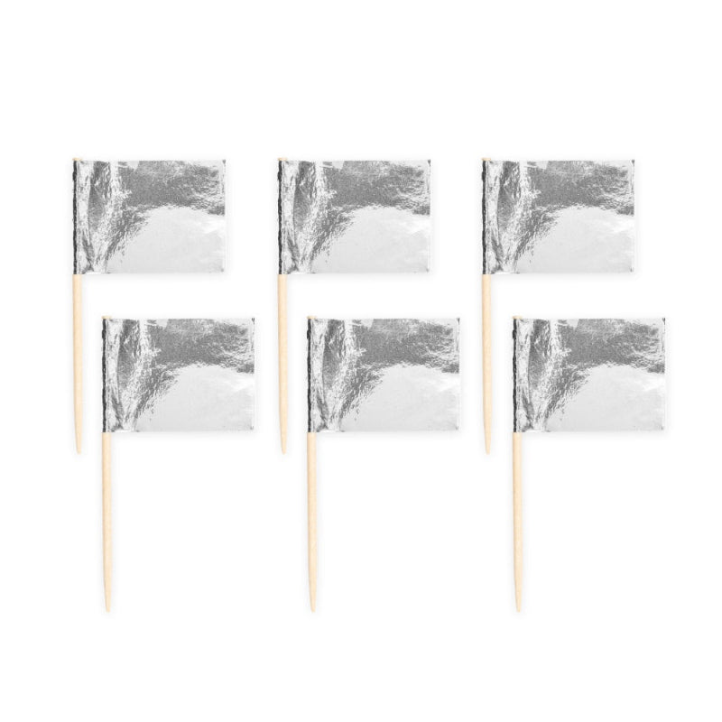 Dê um toque moderno e brilhante às suas celebrações com estes charmosos espetos em forma de bandeirinha prateada! Este conjunto é perfeito para decorar e dar um toque especial a todo o tipo de aperitivos e canapés. Com um acabamento prateado, trazem um brilho elegante até para as festas mais animadas.