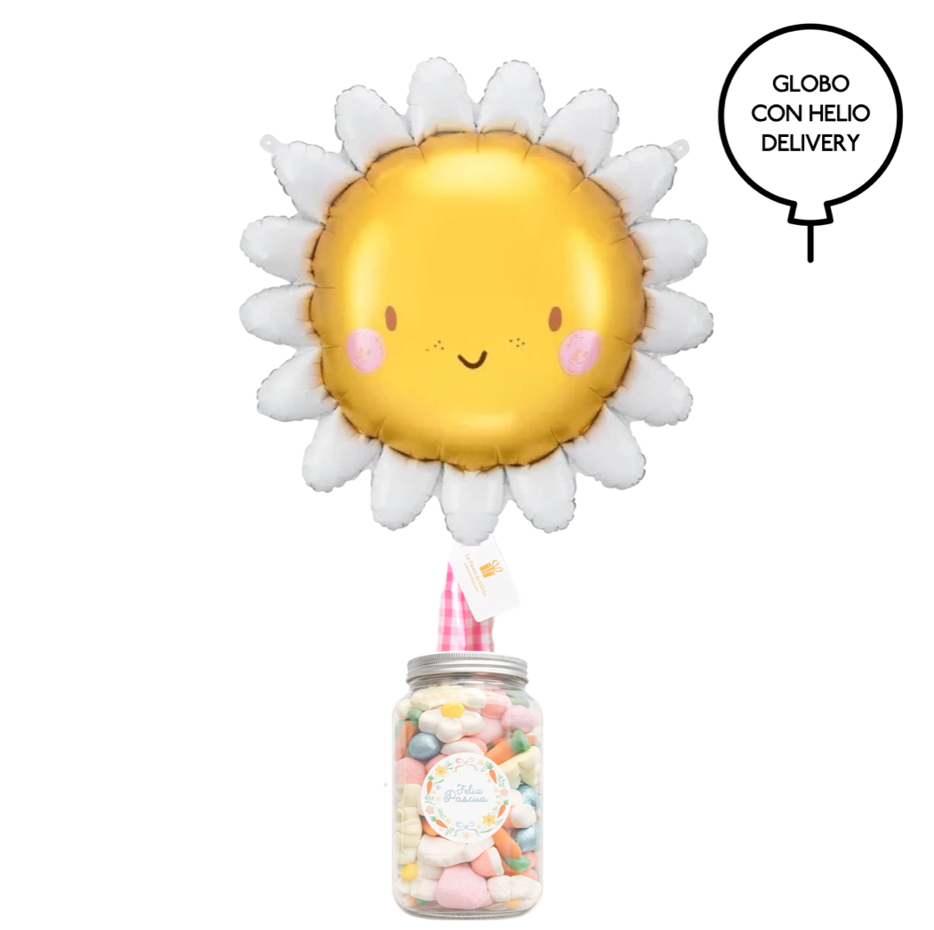 - 1 balão foil Sol XL de 70 cm. Aproximadamente. inflado com hélio profissional e fita adesiva. Não inclui peso.